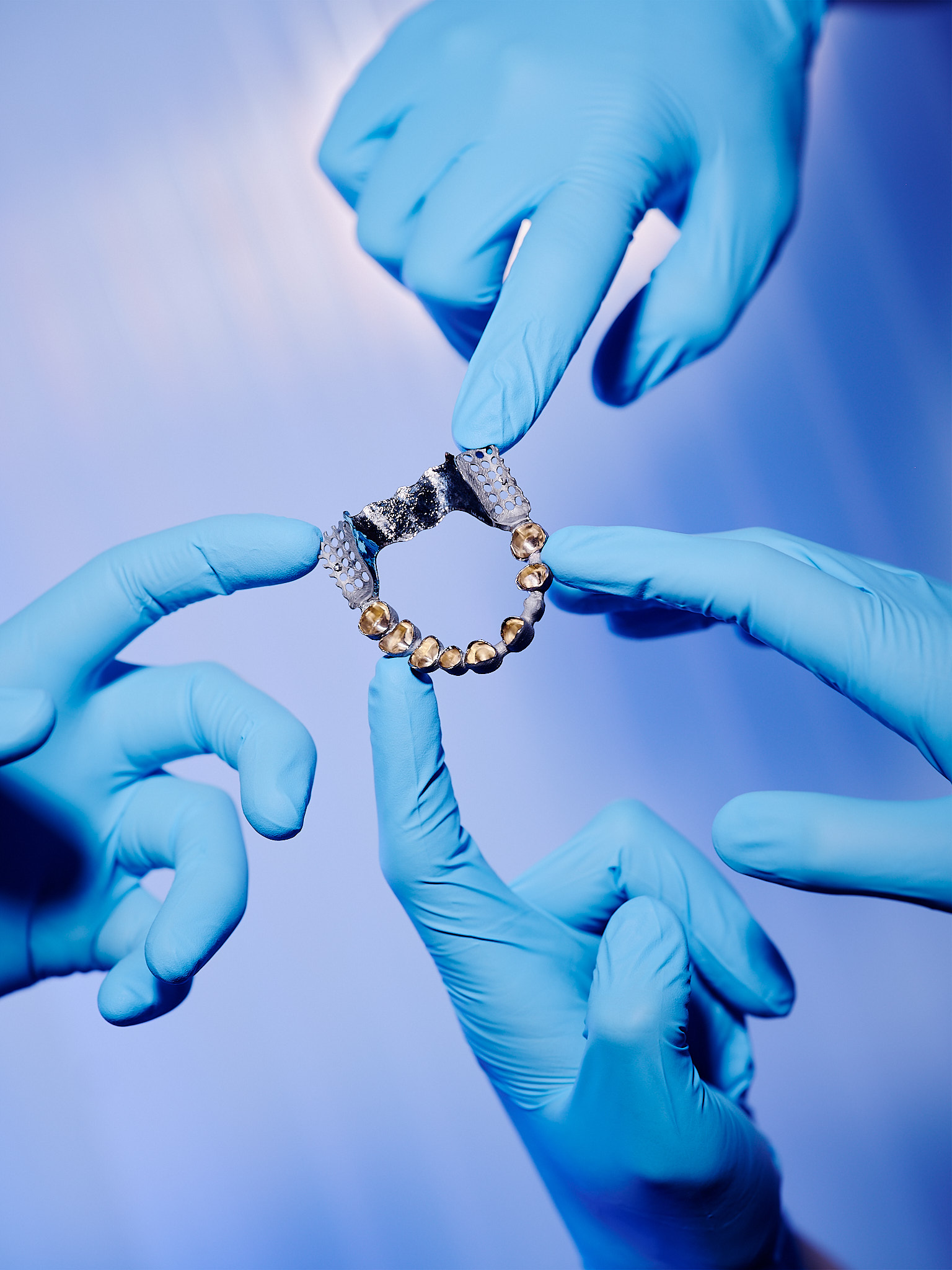 Der Impuls für die von FIDENTIS genutzte Technologie wurde durch das Multimaterial-Zentrum Augsburg gegeben, ein Forschungsprojekt des Fraunhofer IGCV. Seit 2017 werden dort additive Fertigungsverfahren für die Herstellung komplexer Multimaterialbauteile erforscht. Dabei werden unterschiedliche Metalle in einem Druckvorgang miteinander verbunden. Bislang flossen insgesamt rund 18 Millionen € in die Technologieentwicklung: Fördermittel aus den Großprojekten MULTIMATERIAL-Zentrum Augsburg und MULTIMAT-BAVARIA II. Zum Einsatz soll die Technologie unter anderem in der Luft- und Raumfahrt oder der Kernfusion kommen. »Ursprünglich wurde die Technologie in Grundlagen erforscht– dann hat ein Zahntechniker erkannt, wie gut sie sich für Zahnprothesen eignet«, erklärt Timo Schröder von FIDENTIS.